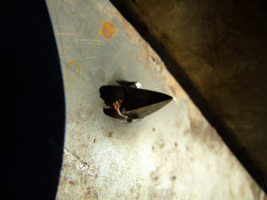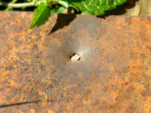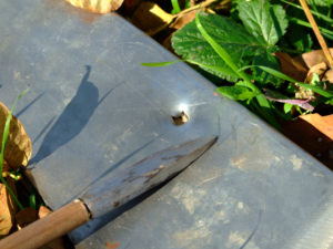Prvi hitac pokazuje pentraciju kroz 2 mm prohromskog čelika – penetracija je odlična, strelu je zaustavio zid od cigle iza ploče.